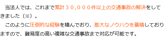 ① 圧倒的な交通事故解決実績 (交通事故解決実績累計30,000件以上※)